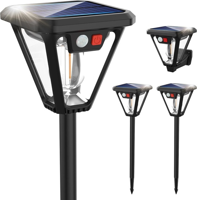 【最新版ソーラー ガーデンライト】最新進化版ソーラー タングステンワイヤCOBランプが新登場!2700 Kの暖かい光は柔らかく雰囲気があります。また、センサー機能向上の為にはセンサー検知角は160°にデザインして、従来の検知角120°のセンサーライトよりほとんどあらゆる角度は不審者を威嚇できます。 【ガーデンライト・2種類の取り付け方】当店のガーデンライトは2種類の取り付け方があります。通常の地上に差込み以外に壁固定パーツを追加して、壁ライトと地上ライトとして両用できます。必要に応じて、異なる取り付け方を選択できます。階段、玄関前、駐車場、庭、ガレージ、ガーデン、花壇、ベランダ·ポーチ、エントランスなどに適用。夜のお庭や玄関先を華やかかつ省エネルギーにドレスアップできるガーデンライトです。 【ソーラー ガーデンライト・節電対策におすすめ】単結晶ソーラーパネルを採用して、昼間の太陽光を夜のあかりに変換します。昼間に充電して、夜に点灯して電気代不要だけではなく、二酸化炭素の排出量もゼロであるエネルギーで環境に優しいです!IP67レベルにデザインして、雨・雪・霧などの悪天候にもソーラーセンサーライト本体を損害しません。玄関・ガーデン・廊下・駐車場などの屋外場所に大活躍です!