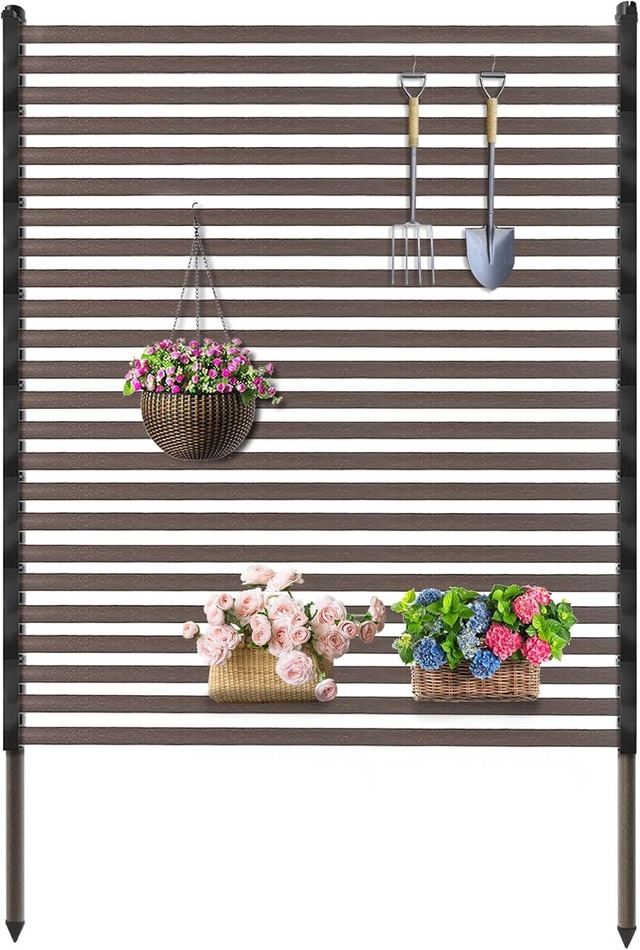 ・定番目隠しフェンス--屋外の柵として通行人の視線を効果的に遮り、個人の庭のリラックス空間を守り、隣家との間仕切りに、道路からの目隠しに、プライバシーを確保します。植物を飾る楽しみがある、目隠しできるガーデンフェンス。 ・いろんなシーンで大活躍・多機能--アプローチや玄関回りはもちろん、お庭にもお使いいただけます!フェンスの部分にS字フックなどを取り付けることで、10kg以内の鉢植え、ジョウロやショベルなどの小物が掛けます。 ・耐久性のある素材--このラティスフェンスは樹脂コーティングされていたスチールパイプを使用しており、頑丈で錆びにくく、長く使用することができます。また、夏の植物の焼けを効果的に回避できます。 ・1枚のサイズ--(約)幅90cm×高さ150cm。設置は土とコンクリートどちらもOKですが、コンクリートには別売りのスタンドが必要です。また、土の場合は20~30cmほど埋め込んでください。
