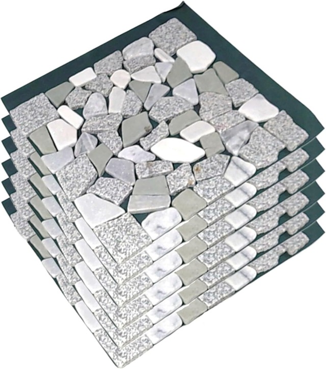 商品サイズ:幅30.5×奥行30.5×高さ1㎝ 重量:1.7㎏ 【雑草防止用シート付】日光を遮りつつが通る仕様なため、お庭の雑草が育ちにくい構造に。敷くだけで防草効果もございます。また、プラスチック製のジョイント式ではございませんので、若干の凹凸があっても地面に沿って敷く事が出来ます。 【6枚セット】ちょっとしたお庭のアクセントにぴったりの6枚セット。組み合わせは自由自在でお好みのレイアウトに。 【サイズ調節可能】石の間をカットすることで、お好きな形にアレンジする事が可能。正方形では形が合わない箇所でも簡単に設置が可能です。 【天然の大理石使用】敷くだけの簡単設置で高級感のあるお庭を演出します。