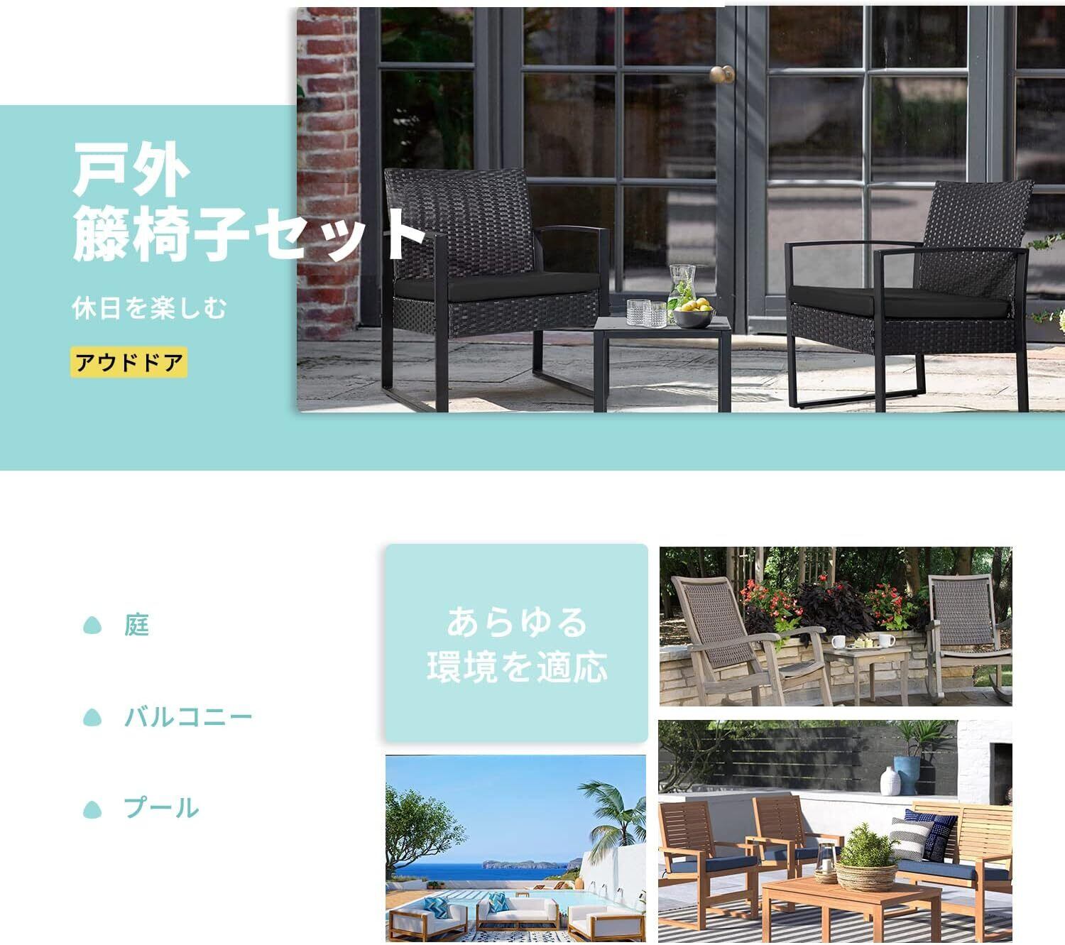 [耐久性と快適性を兼ね備え]:椅子の部分は上質なPE籐材料と頑丈な金属フレームで作られています。籐材料は防腐処理を経て耐久性が上がり、丈夫で切れにくい。あらゆる天候に対応し、より長い時間を使うことができます。また、柔らかい座布団も付属して、椅子の快適性においてもまったく劣らない。